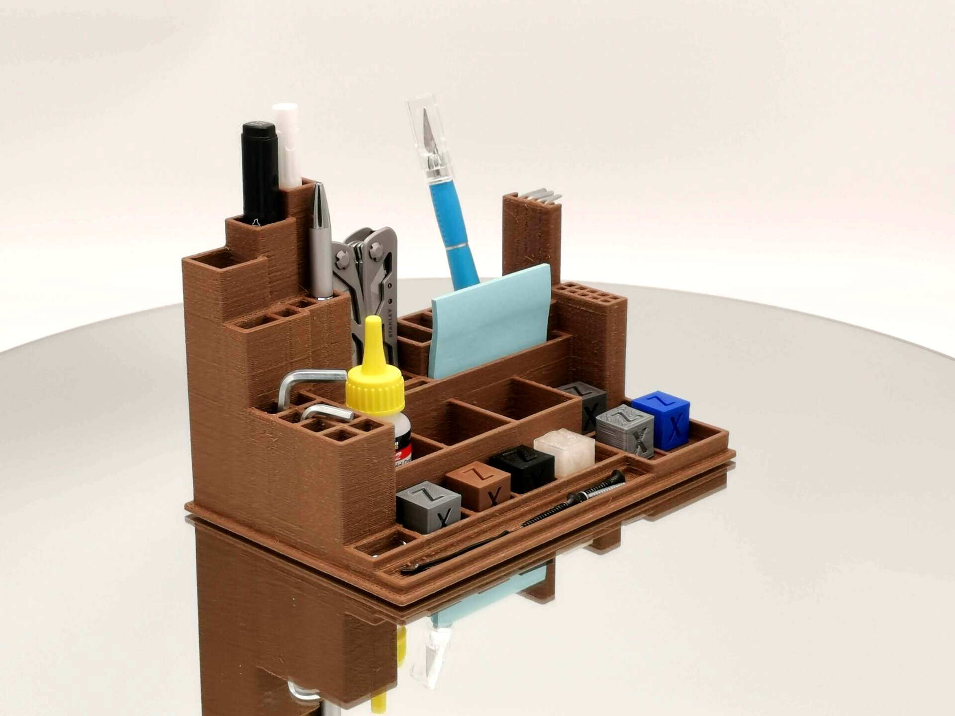 Setting: Ideal for your desk at home or in the office, the steel-filled PLA provides a refined look-and-feel. It also adds a magnetic property to this item, allowing you to use magnets to stick notes and other items directly to your desk organiser!