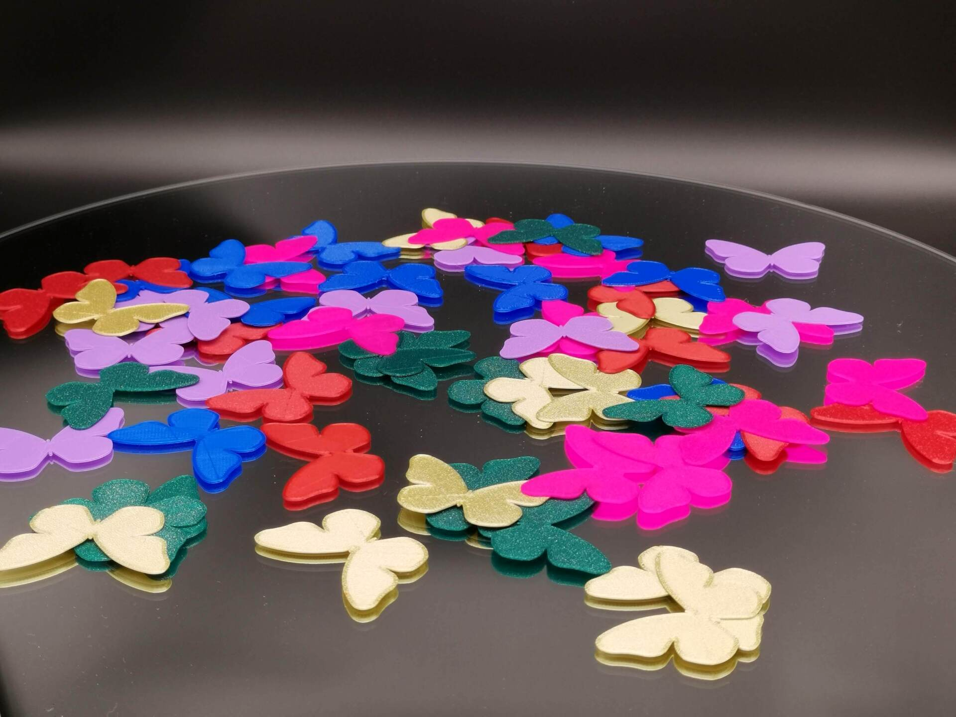 Setting: These butterflies, printed in an array of colours, can be used to brighten up any room or used as party decorations! Creating a multicoloured effect in a play area or nursery can be particularly fascinating to young children.