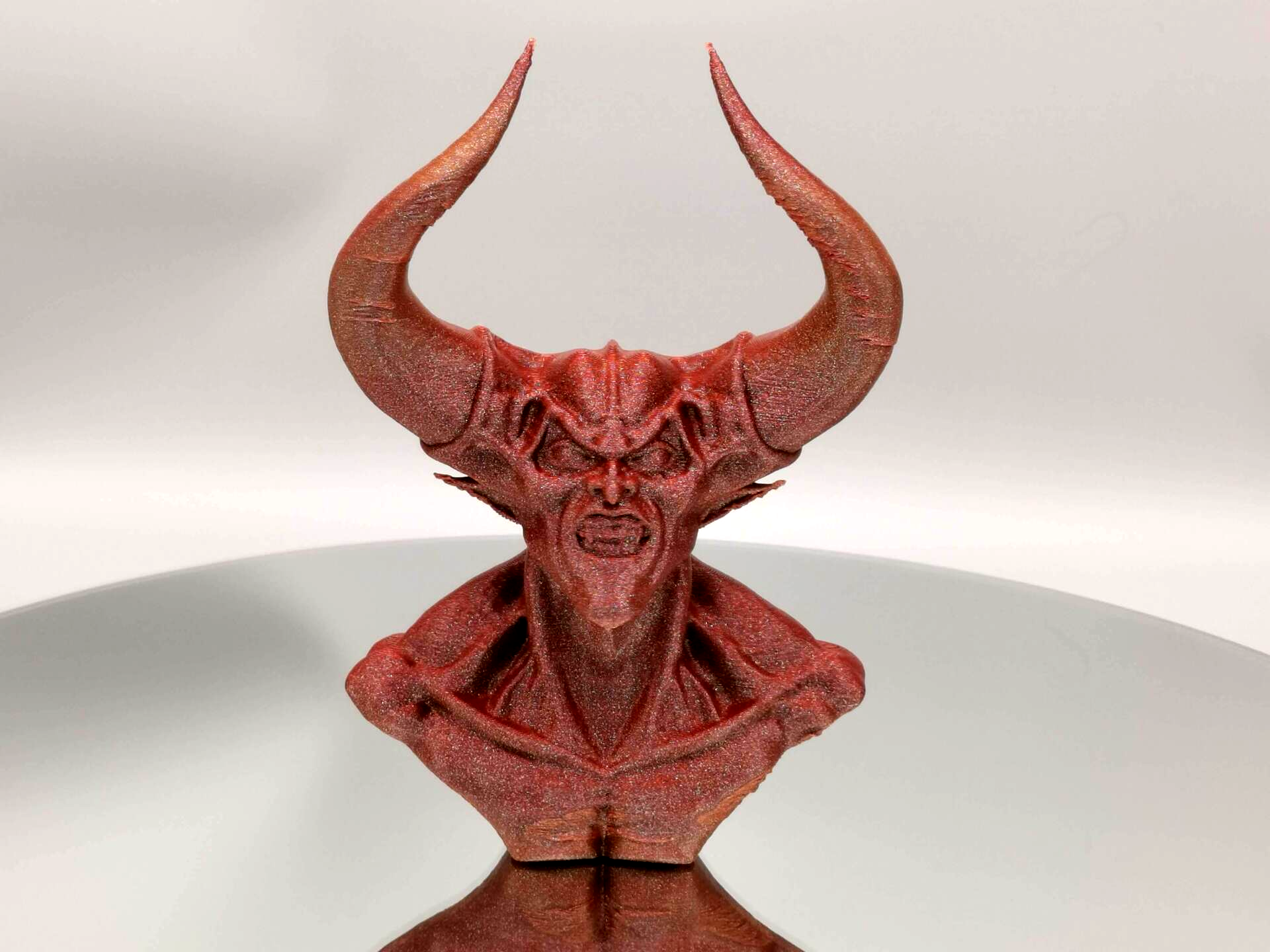 Setting: This detailed devil bust could be the next scary addition to your Halloween decorations! The metallic red PLA was used to enhance the details on this item even further.