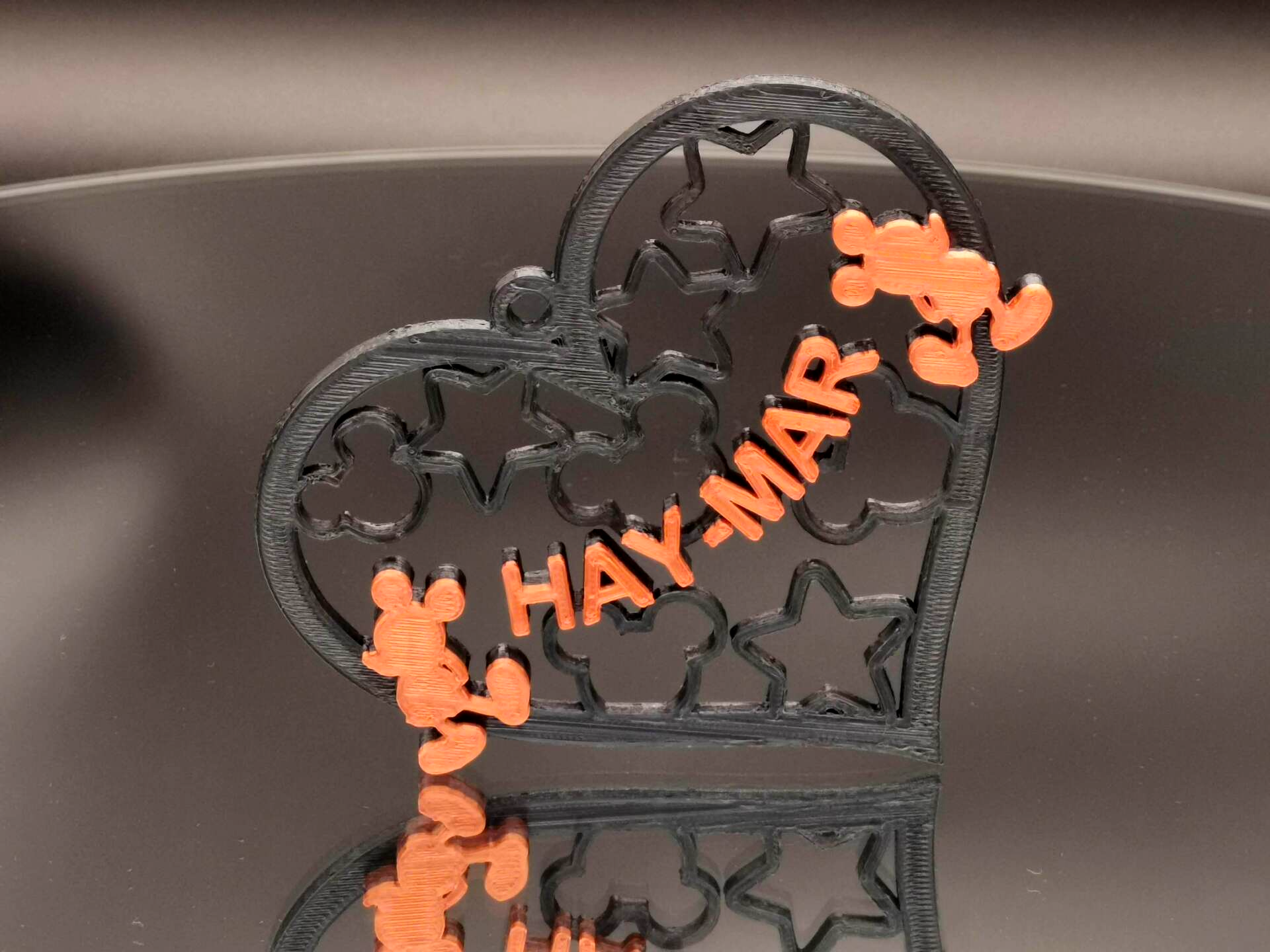 Setting: We wanted to gift something personal and sentimental to celebrate a special couple, and came up with this personalised love heart ornament. Incorporating their love of Disney, we featured Mickey Mouse silhouettes together with their names. The ornament can be placed on a dressing table or hung somewhere in the home. This would make a great engagement or wedding gift.