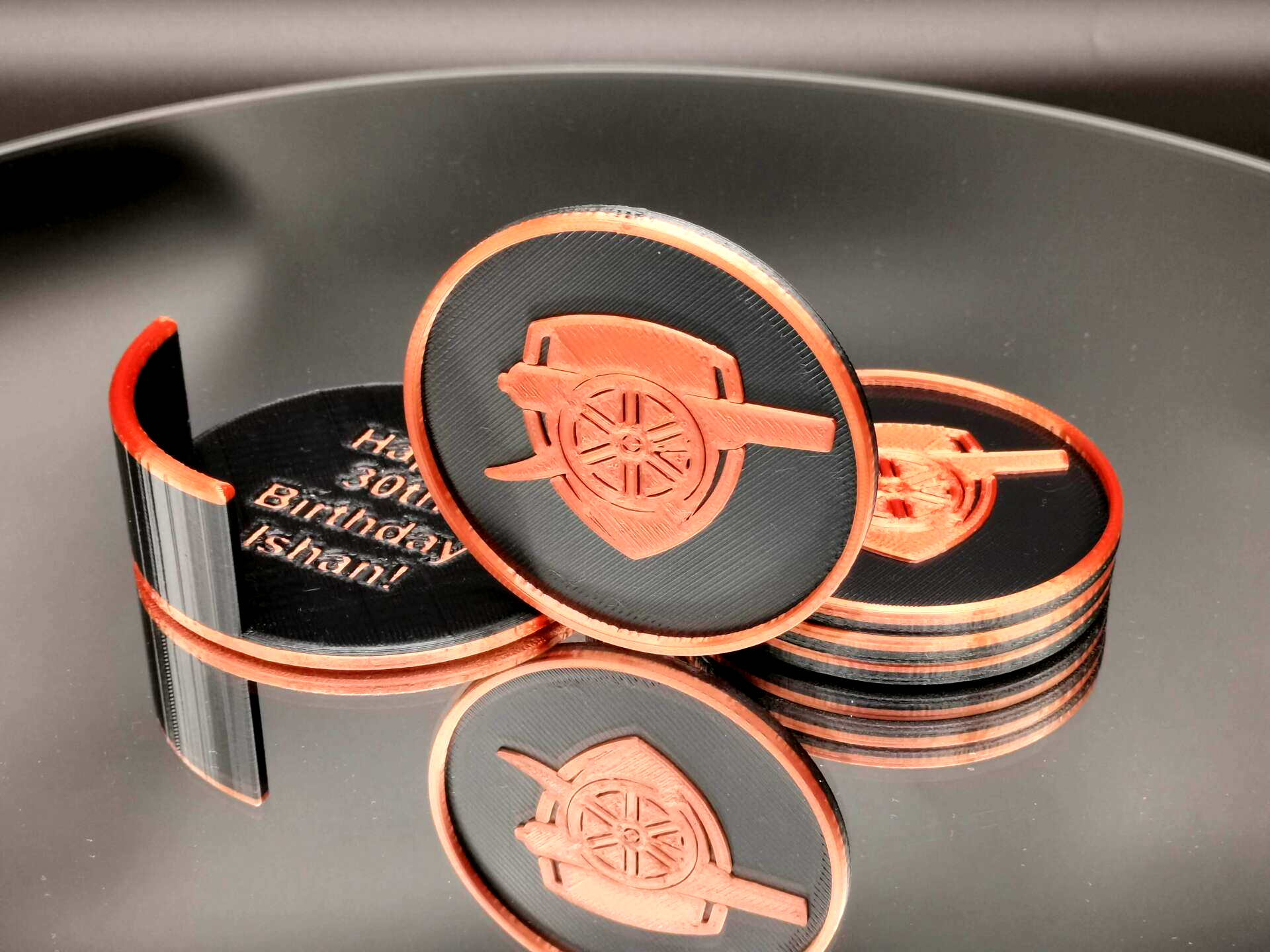 Item: Arsenal Football Coasters and Personalised Coaster Holder