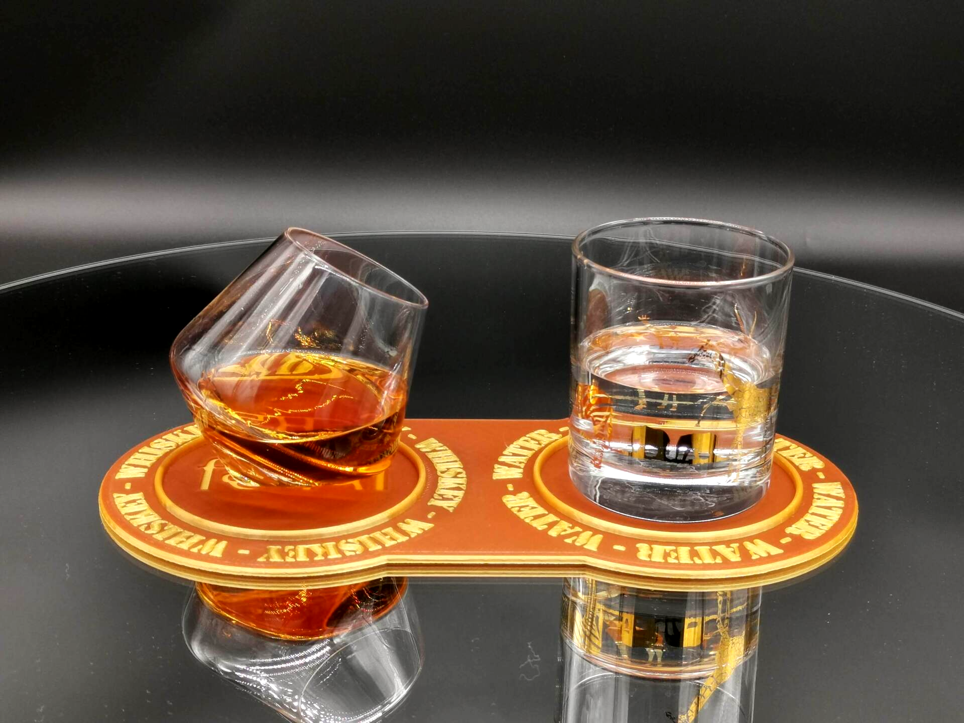 Item: Personalised Whiskey and Water Double Coasters and Coaster Holder